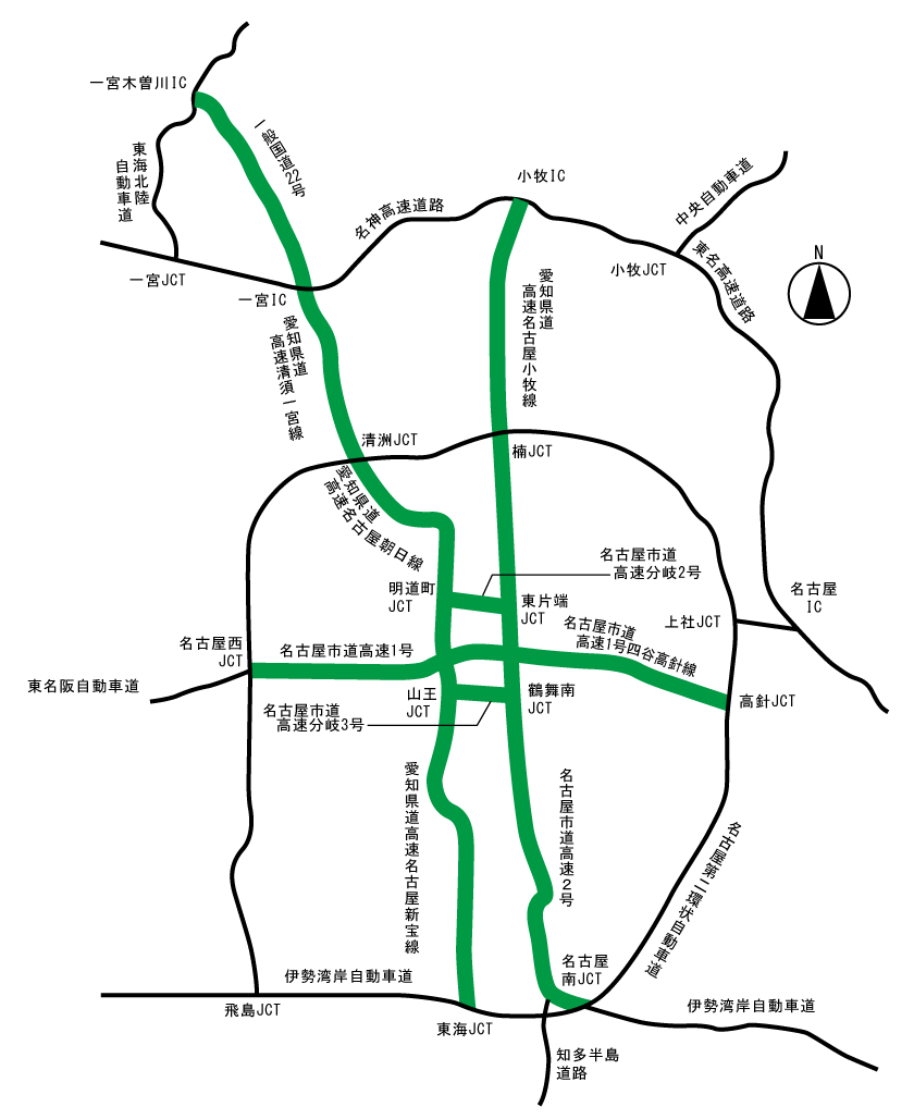 | 名古屋市道高速2号 | 名古屋市北区大我麻町 | 名古屋市緑区大高町 | 20.6 |