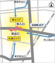 (仮称)栄出入口の設置により、栄・大須エリアへのアクセス性が向上するとともに、利用出入口の選択肢が増え、周辺の交通が分散され、一般道路の渋滞緩和が期待されます。