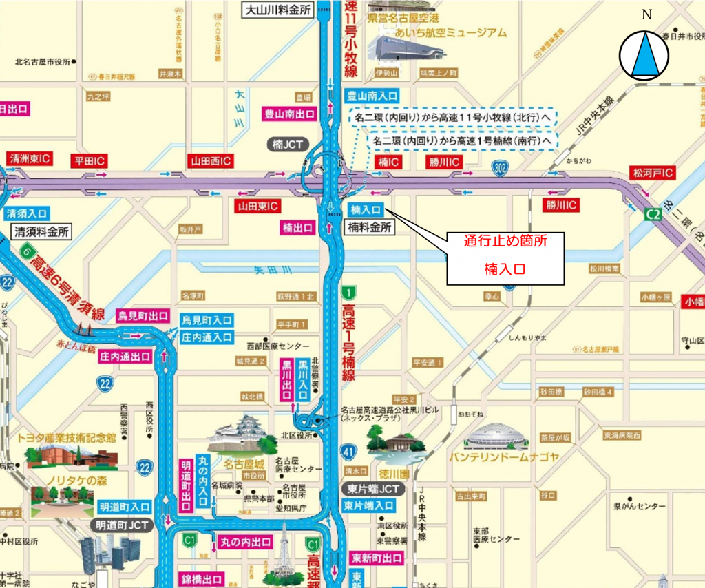 ※国道41号から名古屋高速への進入部分が通行止めになります。